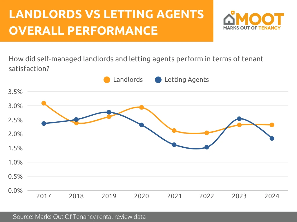 When tenants search for a new home, they often ask themselves: "Should I rent directly from a landlord, or is it better to go through a letting agent?" Marks Out Of Tenancy's latest data-driven report sheds some intriguing insights on tenant satisfaction levels associated with these two primary rental management types.